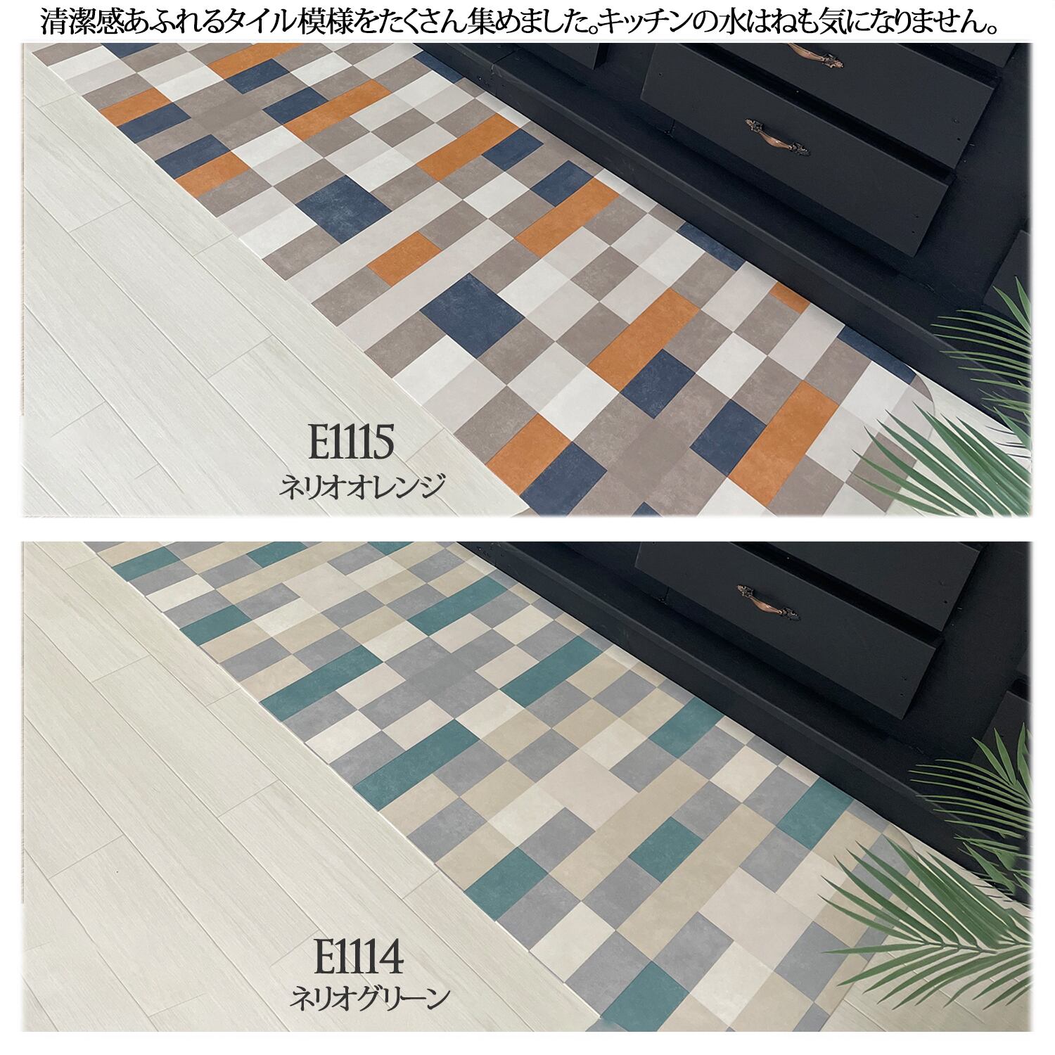 40サイズオーダークッションキッチンマット【60x380cm】 シームレス (タイルEシリーズ)