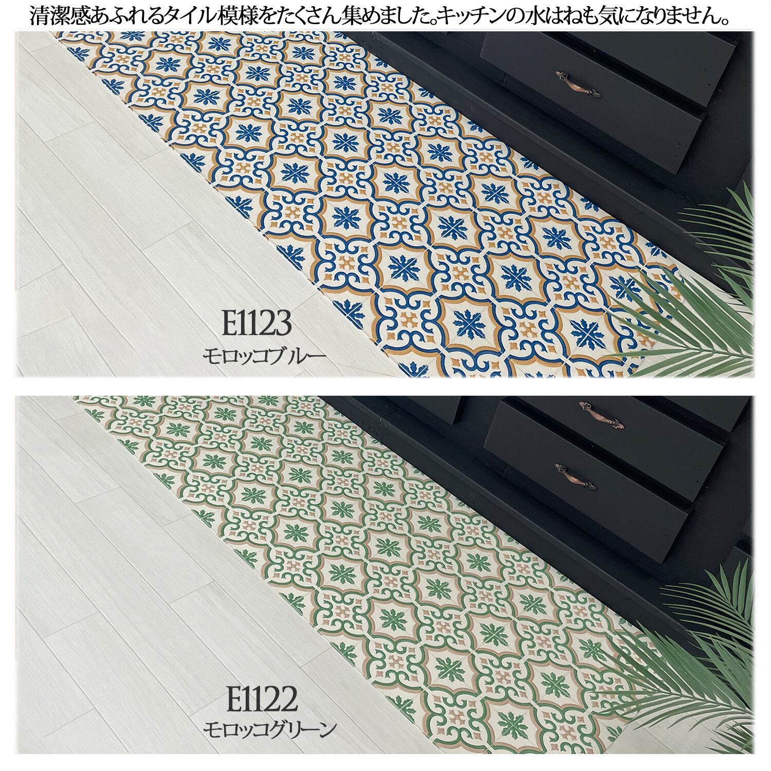 40サイズオーダークッションキッチンマット【60x470cm】 シームレス (タイルEシリーズ)