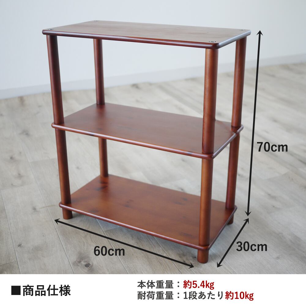 木製ラック3段 幅60x奥行き30x高さ70cm 収納 おしゃれ 3段収納ラック 天然木 収納棚 オープンラック 省スペース サイドラック ベッドサイド ディスプレイラック オーディオラック シェルフ サイドテーブル 幅60 高さ70 奥行30