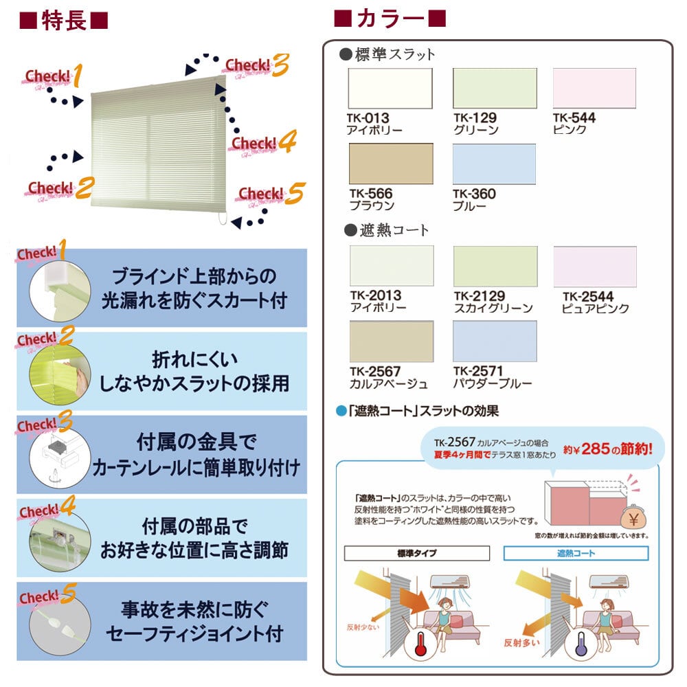 ・ブラインド上部からの光漏れを防ぐスカート付