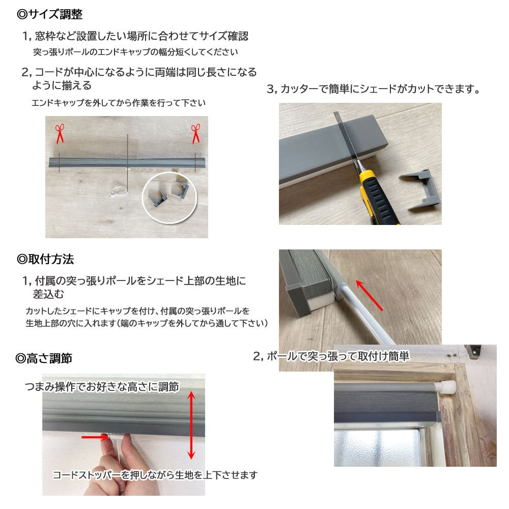 ※シェード本体をカットする際にはケガに十分ご注意下さい。安全のために手袋の着用をおススメします。